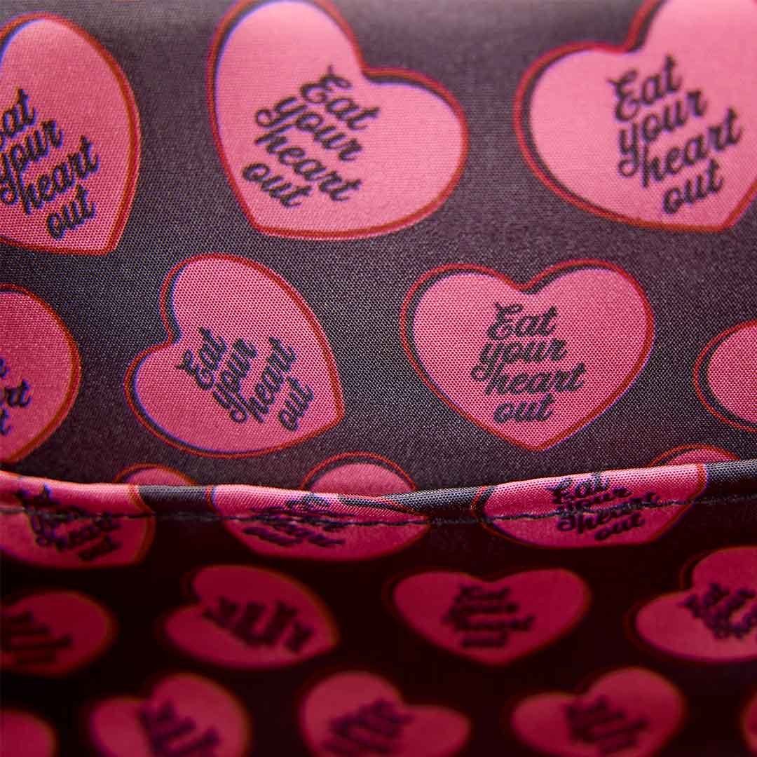 This crossbody bag is inspired by the Pink Ladies' outfits! You'll find incredible details like a molded metal top handle that features cat's-eye glasses with rhinestones, a cloth scarf ascot, satin material, and "Pink Ladies" embroidered on the front. This is a really fun way to show off one of your favorite musical movies AND make a fashion statement at the same time!