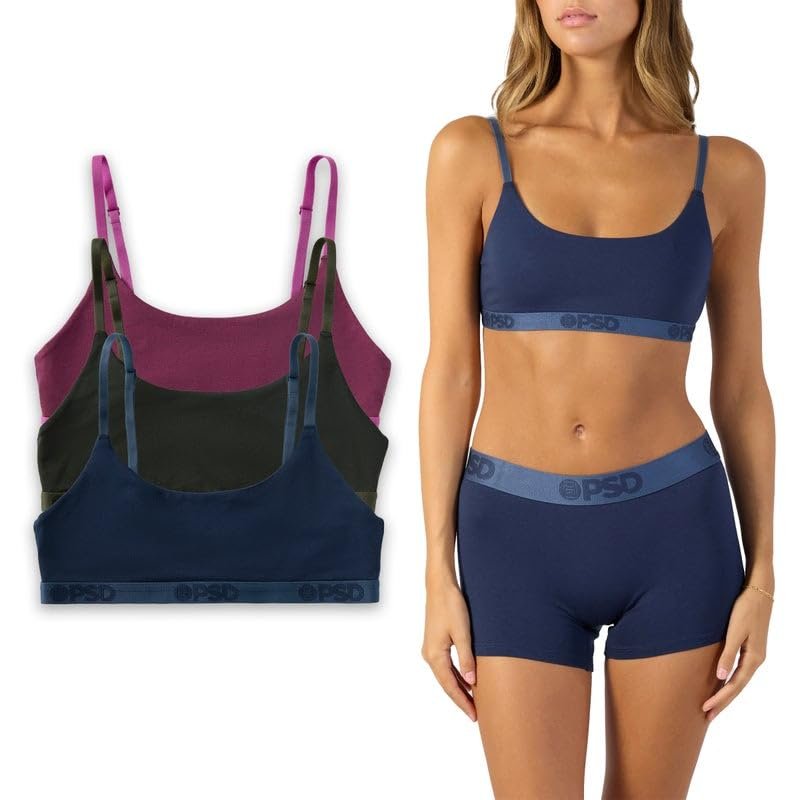 Experience cozy, festive flair with the PSD Underwear Women's Halloween Modal Sports Bralette 3-Pack, a soft, breathable trio of lightweight bralettes crafted from silky modal fabric that feels as good as it looks. Designed for both comfort and playful style, each bralette embraces your shape with gentle stretch and a snug fit—perfect for lounging, light workouts, or layering under your favorite fall outfits. Whether you’re dressing up for the season or just embracing everyday comfort with a hint of holiday spirit, this 3-pack brings versatility and breathable support in a fun, Halloween-ready set.