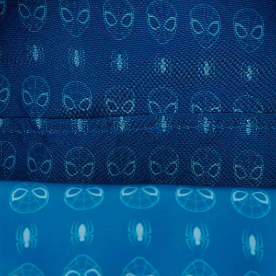 This mini backpack features a sherpa, heart-shaped front pocket featuring Spider-Man's mask. All over the rest of the bag, you'll find various symbols of Spider-Man in squares that look stitched together. Plus, the zipper pull on the front pocket features Spider-Man's mask!