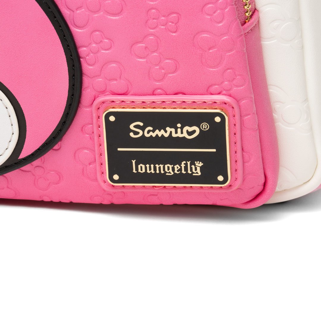 The bag’s debossed all-over pattern adds extra texture, while gold-tone hardware gives it a luxe finish. When the lights go out, this bag glows — revealing an extra dash of Sanrio magic!