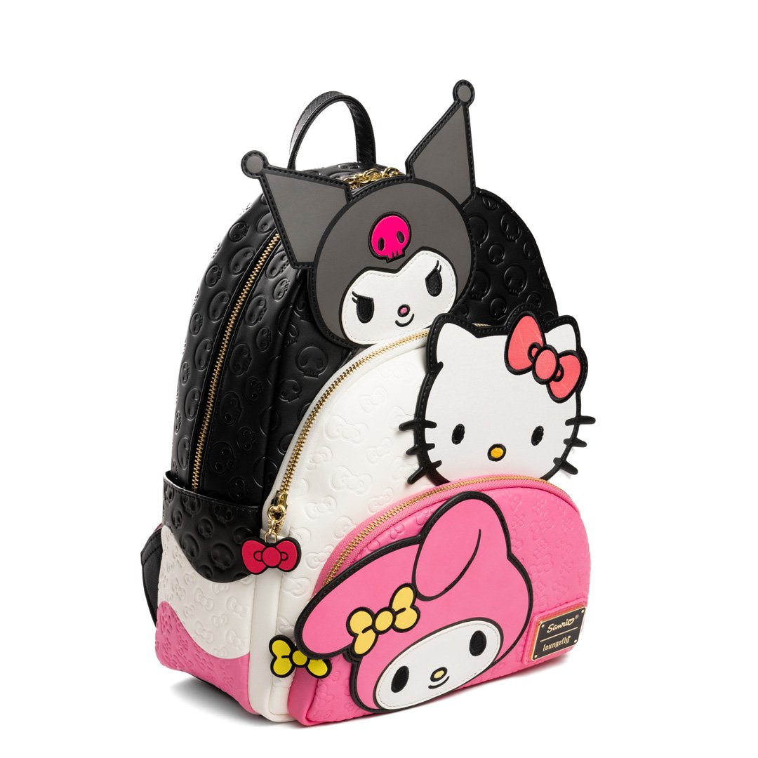 Loungefly Sanrio Kuromi, My Melody, and Hello Kitty Glow In The Dark Triple Pocket Mini Backpack - 707 Street Exclusive