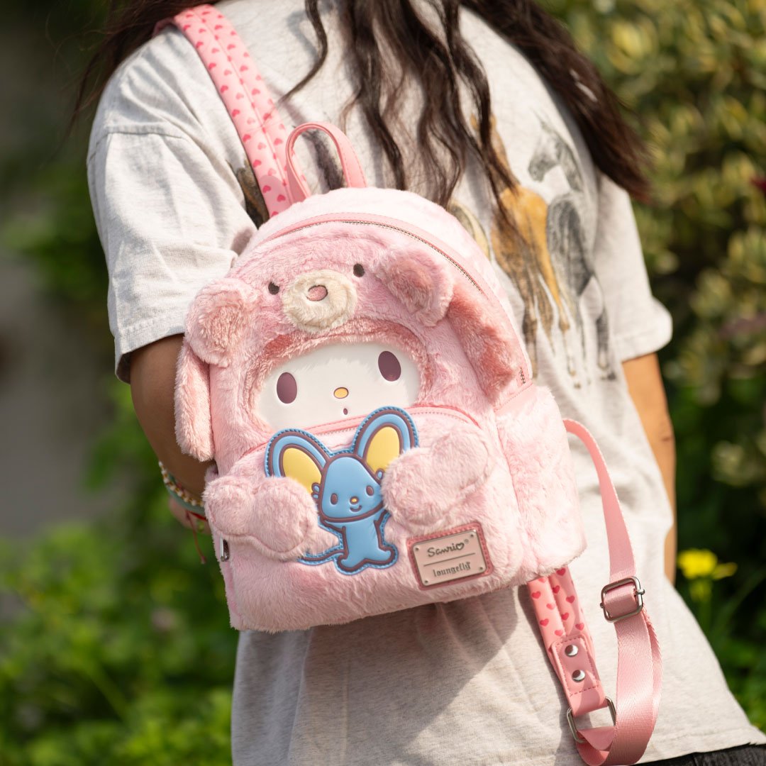 Sweet, soft, and irresistibly cozy — fall head over heels for the Loungefly Sanrio My Melody Bear Cosplay Mini Backpack, a 707 Street Exclusive that wraps My Melody’s gentle charm in an extra layer of cuddly cuteness.
