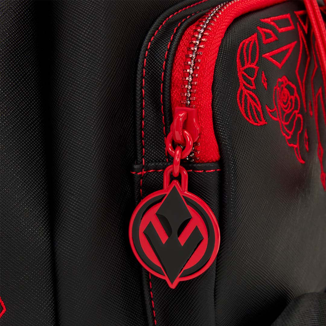 This mini backpack is inspired by your favorite villain, Darth Maul. The body of the bag is black. You'll find red embroidery designs inspired by the character on the top flap, front pocket, and side pockets. It's a must-have for any STAR WARS™ fan that's ready to be the best dressed in the galaxy!