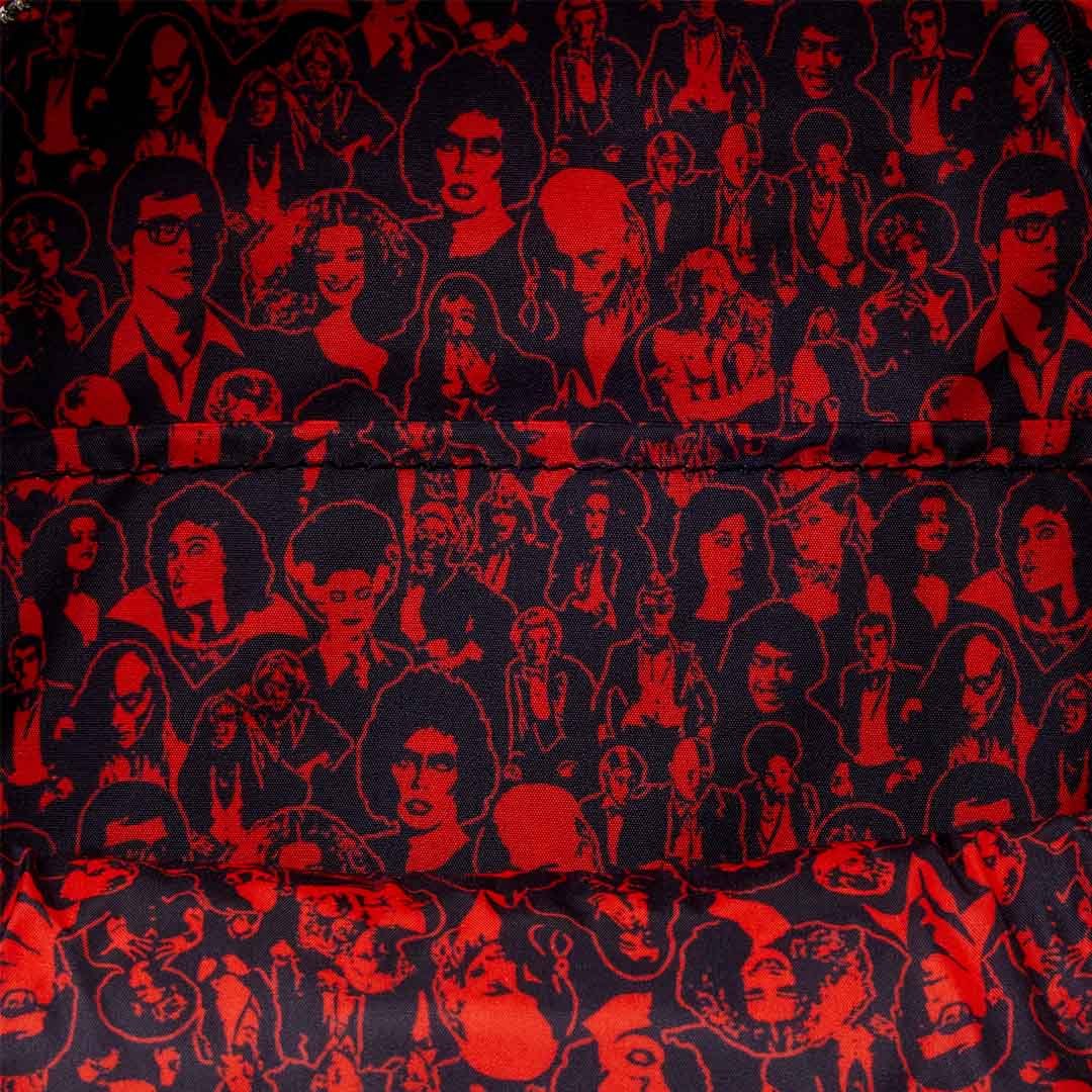 This mini backpack is an absolute staple for spooky season! After all, it's Rocky Horror Picture Show season! This bag features black quilted material with stud cones. The front pocket is a puffed applique in the shape of the iconic lips from the beginning sequence.