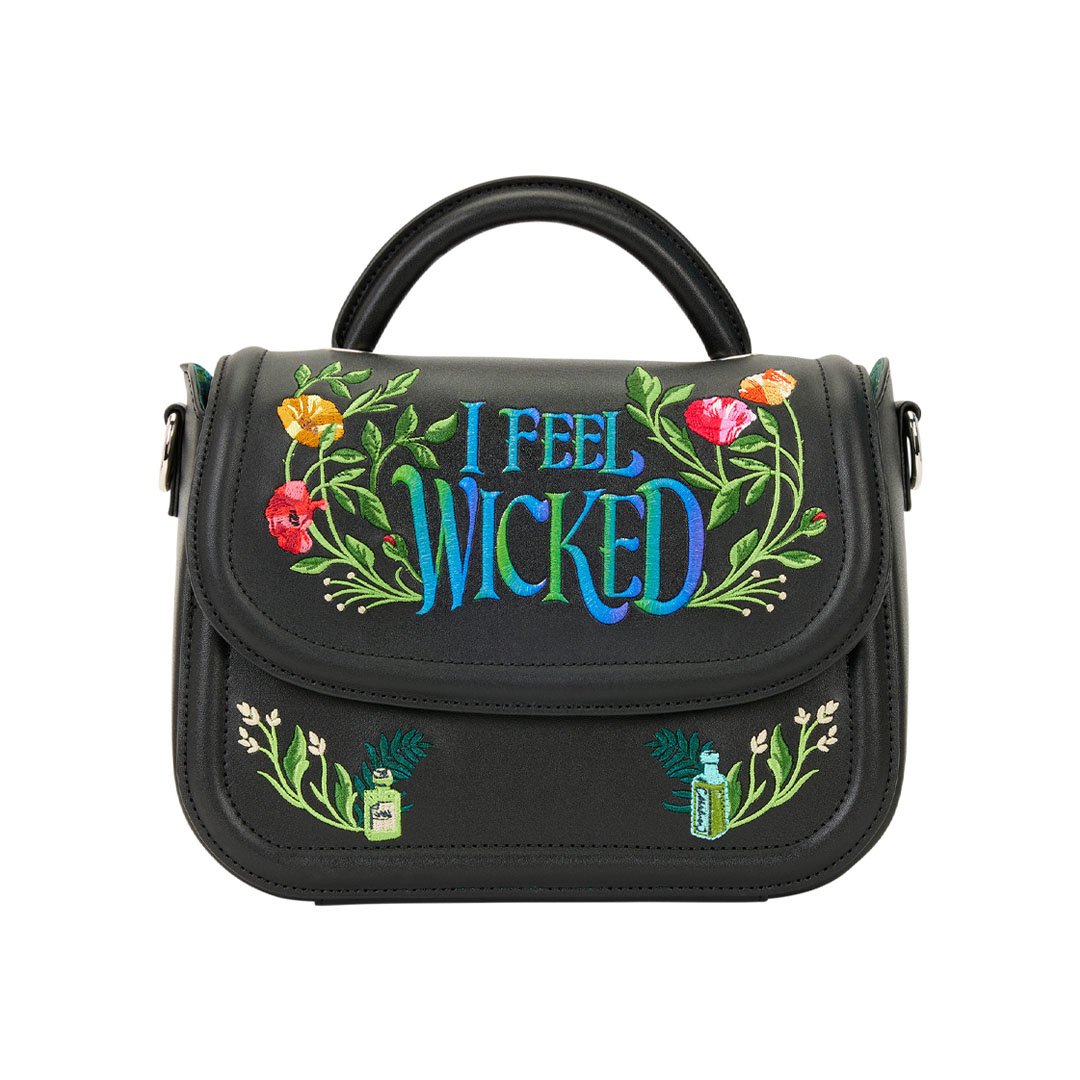 This crossbody is a gorgeous way to show off your love for all things Wicked! You'll find metallic embroidery that says "I Feel Wicked" on the front. The text is surrounded by embroidered foliage on the front, sides, and back of the bag. It's a gorgeous floral piece that's ready to come with you on all your adventures – and to see the film!