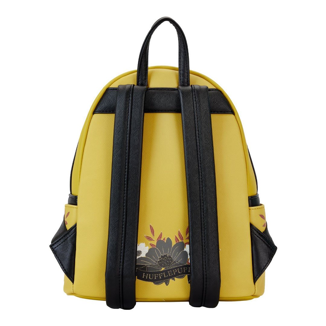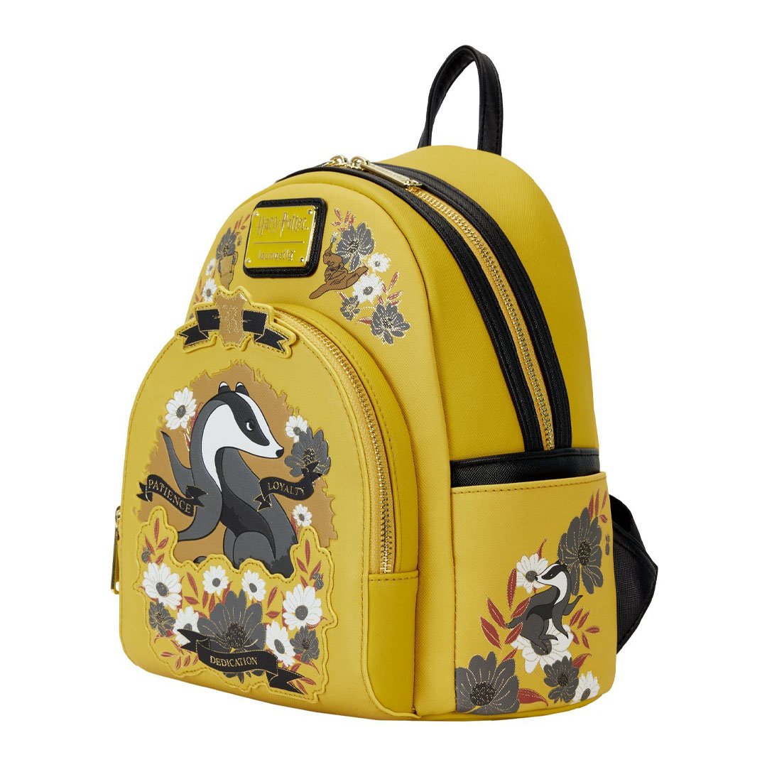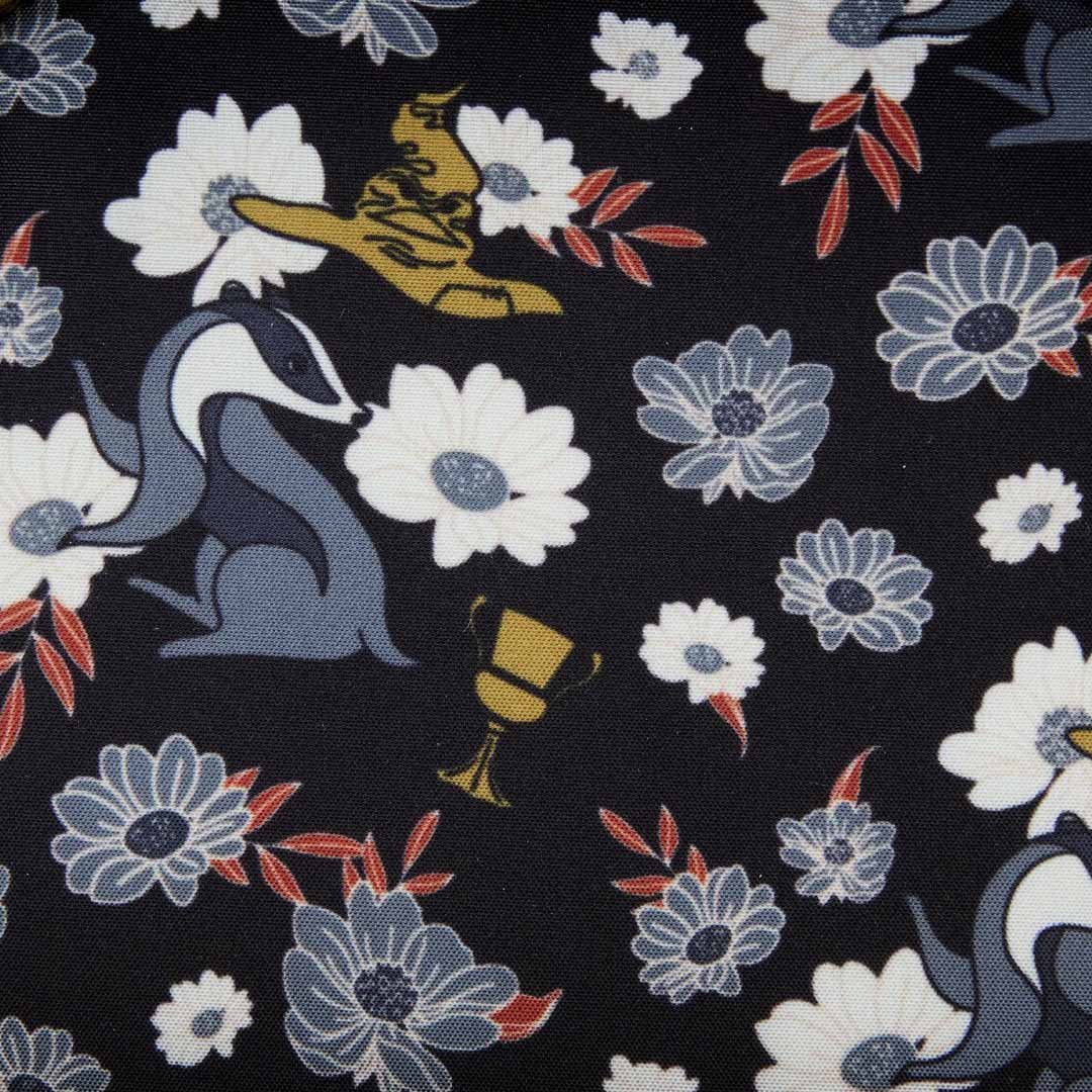 Stop and smell the flowers while representing your House! The Loungefly Warner Brothers Harry Potter Hufflepuff House Tattoo Mini Backpack is perfect for growing your love of all things Harry Potter. On the front of this charming yellow-colored backpack, an applique Hufflepuff symbol of the badger appears among white and dark field flowers. Banners bearing the traits of the Hufflepuff House appear as well, including Patience, Loyalty, and Dedication. Above, you’ll find more flowers and a sorting hat. Foil details add an elevated touch. On the side pockets, the Hufflepuff symbol, among the flowers, makes another appearance. The reverse side of the backpack carries a banner that says “Hufflepuff,” which is nestled among flowers.