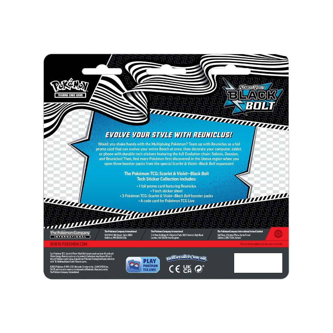 Strike with psychic precision in the Pokémon TCG: Scarlet & Violet 10.5 — Black Bolt Tech Sticker Blister! Centered around the powerful Reuniclus, this collection features exclusive items to enhance your deck and showcase your style. With booster packs, a foil promo, and a tech sticker sheet, this set is perfect for collectors and competitive Trainers alike.