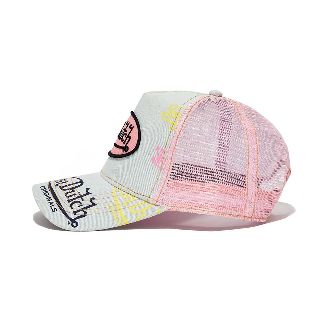 Brighten your fit with the Von Dutch Light Denim Pink Logo Trucker Hat—featuring a soft light-wash denim front, bold pink logo, and breathable mesh for easy, everyday wear.